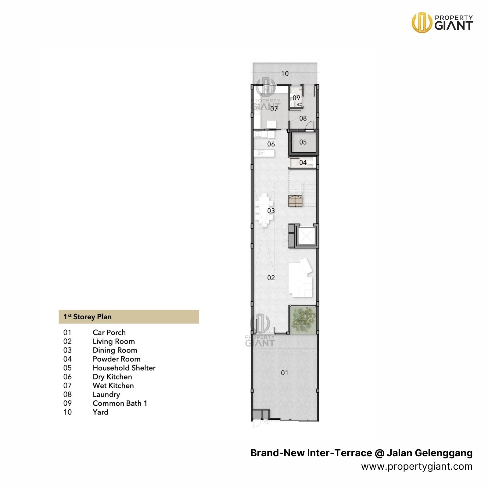 Located within the highly sought after Sembawang Hills Estate in District 20, Singapore, this brand new four level inter-terrace at Jalan Gelenggang presents a rare opportunity to own a spacious modern landed home on a generous land size exceeding 2,000 sqft. Thoughtfully designed for comfortable multi generational living, the home features five ensuite bedrooms, a family tea room with ensuite bathroom that can be enclosed to form a sixth bedroom, a dedicated helper’s room with attached bathroom, and a powder room for guests. A private home lift serves all four levels, enhancing daily convenience, while the double volume dining area and open roof terraces bring in light, airflow, and a strong sense of space. With the ability to park two cars and enjoy functional layouts throughout, this property appeals to buyers seeking a brand new inter-terrace in Sembawang Hills, with modern comforts, generous proportions, and long term livability in a prestigious landed enclave.